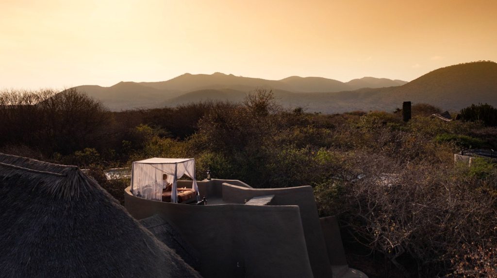 The captivating ol Donyo Lodge is tucked away in the cool shadow of the Chyulu Hills neighbouring Amboseli, one of Kenya’s most prized safari destinations. The lodge boasts spacious guest suites, no two of which are the same. Each features their own exclusive plunge pool, as well as a rooftop terrace where an elegant star bed can be set up to sleep beneath the glittering night sky.