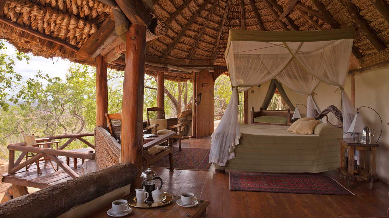 Elsa’s Kopje (named after Elsa the lioness) has long been famed as one of Kenya’s most luxurious retreats, with sweeping views over the buffalo and elephant filled savannah, an infinity pool, and exquisite food, it certainly lives up to its reputation. The lodge is almost invisible to the eye as you approach, it is built into Mughwango Hill and only naturally sourced materials were used. Elsa’s was built above the site of George Adamson’s original campsite, and Elsa the lioness’ grave is not far away.